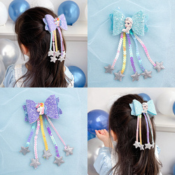 Детские Замороженный бантики Соединение на девочку детские Айша для маленькой принцессы Аксессуар для волос пайетки лошадь хвост Патрон