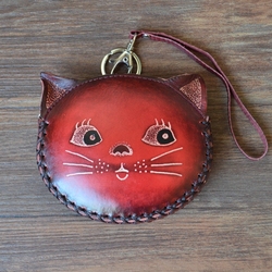 Кожаный Милые монеты кота пакет Мультяшный животных ручная работа пакет Небольшие деньги пакет Творческий подход из натуральной кожи небольшой изменение пакет Женский мини пакет