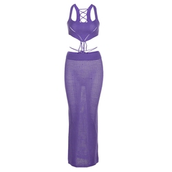 Европейский стиль INS Hollow Sexy трикотажный Горячая девушка с маленьким жилетом низкая посадка со шнурками юбка комплект два наборы Длинная юбка