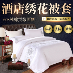 Полностью хлопок 4 предмета Пятизвездочный отель чистый белый кровать верх Поставляет вышивку высокая ветка чистый хлопок 60 отелей