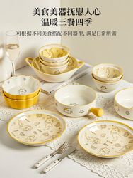 Французские блюда комплект Чистое домашнее хозяйство белый Смягчение керамических блюд, посуды, комбинация палочек для еды, перемещение новый Кроличья новогодняя посуда