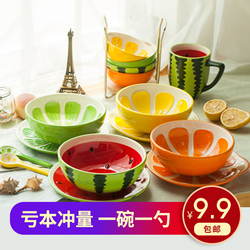 Северный стиль мультфильм творческий милый десертный фруктовый арбуз салат из рисовой миски чаша посуда на тарелку ложки керамическая посуда комплект