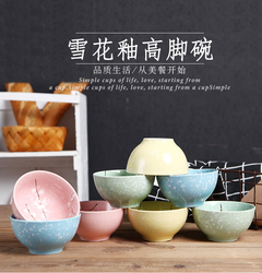 Японская глазурья низ цвет Снежинка дома 4,5 дюйма высокая Foot Xiaomi Rice Bowl Ceramic Литературная вишня Blossom Soup Bowl 8 Установка