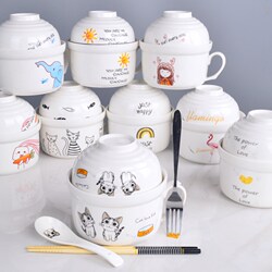 Японский стиль творческий мультфильм Большая керамическая чаша спальня общежития общежития общежития общежития общежития один люди комплект Изысканный комплект принимать пищу
