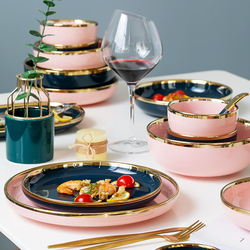 Light Luxury Golden Border Rice Rice Pine Ceramics Division Nordic Creative Bowle комплект Домашняя большая суп -миска высокая Комбинация стоимости лица