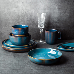Японские керамические посуды керамической посуды комплект Главная 2022 новая коллекция Простой поколение Клетчатая высокая Оценка блюда