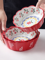 Спец. предложение FH сети красный Ресторанная ручная рука керамическая миска для салата для салата для салата один Сладкая чаша для завтрака пшеничная табличка двойной ухой