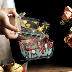 Жизнь двухшкового ремешка корпус Стеклянная миска Микроволновая печь Бытовая милая десертная чаша салат-чаша супю