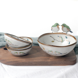 Японские и ветровые вышитые птицы рисовая чаша творческая личностная чаша керамическая чаша низ цвет Браги