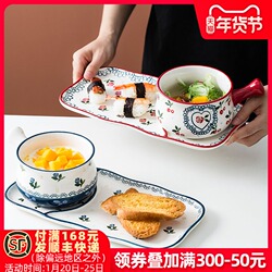 Японцы вишня, рисуя глазурь низ цвет Керамическая посуда комплект Бытовая рисовая чаша фруктовый чаша салат небольшое блюдо