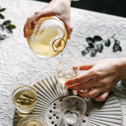 Шеф-повар полосатый принт Саке 1 горшок 4 чашки винный набор комплект Фруктовый жидкий стекло, маленькая чашка для чашки вина домашняя подарочная коробка