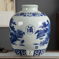 Джингджэнь сине -белый фарфоровый винный алтарь керамический винный винный бутылка Домашнее винодельное танк 10 кит.фунт 50 кит.фунт Запечатывание пустого винного танка с краном