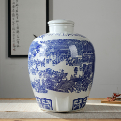Jingdezheen керамический винный банку уплотнения синий и белый фарфор пузырьковый бак 50 кит.фунт 100 кит.фунт 150 кит.фунт Винный бак для печей-тибетского
