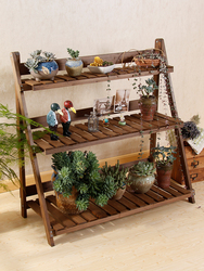 Zakka Multi -Layer Tri -Layer с твердым деревом цветочной стенд Внутренний балкон на открытом воздухе сочный широкая Может со складыванием Защита окружающей среды и коррозионная стойкость и старая