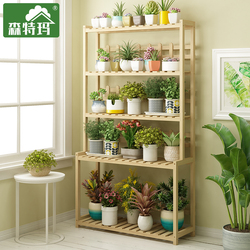 Цветочная стойка с твердым деревом посадки -тип многослойный крытый балконный полка появляется поколение Простая гостиная Light Luxury Green Luo Duoduo
