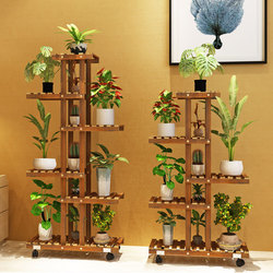 Сплошная деревянная стойка для цветочного стойка Multi -Layer гостиная цветочный горшок с балконом на полке висящая орхидея зеленый луо бамбуко