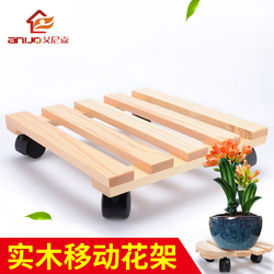 Твердая древесина утепленный Мобильная цветочная подставка, простая основание для цветочного горшка, лоток в помещении Bonsai Bonsai Universal Wheel