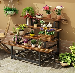 Цветочная рама с твердым древесиной, помещенная в балкон на балконе, многослойный шаг -тип железного искусства, приземление цветочного горшка, открытая цветочная подставка