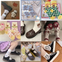 Демисезонные милые японские носки, мультяшные рождественские гольфы, подарочная коробка, средней длины, подарок на день рождения