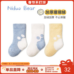 尼多熊 Коралловые бархатные зимние флисовые удерживающие тепло детские демисезонные носки, увеличенная толщина
