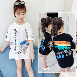 Летняя одежда, футболка с коротким рукавом, летний длинный топ для подростка, для девочки, коллекция 2022, в западном стиле, детская одежда, в корейском стиле, средней длины