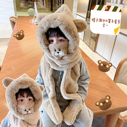 Зимняя шапка, шарф, унисекс перчатки, удерживающая тепло медицинская маска с капюшоном, с медвежатами, с ушками