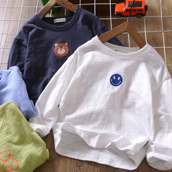 Унисекс осенняя футболка, одежда для верхней части тела, лонгслив, длинный рукав, из хлопка, детская одежда, круглый воротник