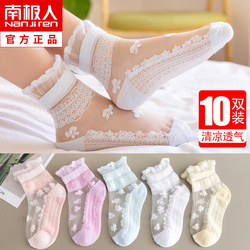 На девочку Носки летние тонкие стиль воздухопроницаемый Ледяной шелковый кристалл носок детские западный стиль кружево для маленькой принцессы чистый хлопок детские носок