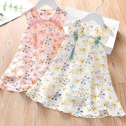 Детское новая коллекция на девочку Летнее платье детские винтаж пластина с застежкой юбка детские Маленькая стрекоза без рукав шифон юбка