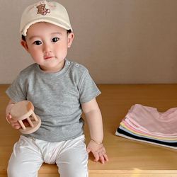 Детский хлопковый белый топ, однотонная цветная футболка, круглый воротник, в западном стиле