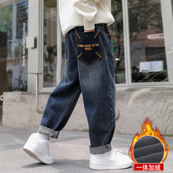 Флисовая летняя одежда, демисезонные джинсы с начесом, детские бархатные зимние штаны, подходит для подростков