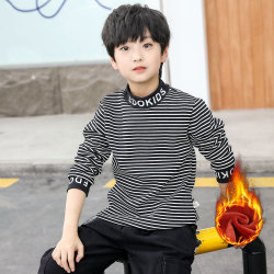 На мальчика Тонкий высокая Воротник детские Зимняя одежда футболка 2021 осень-зима мужские и женские ребенок полосатый принт Низ верх Одежда