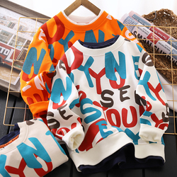 На мальчика весна стиль толстовка для отдыха 2022 демисезонный стиль Муар стиль верх Одежда круглый воротник детские Два куска
