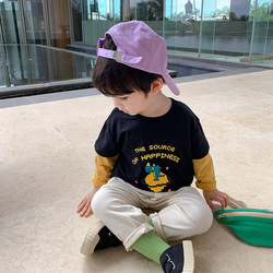 Детские длинный рукав Футболка демисезонный Два куска на мальчика Розливая рубашка 2022. новая коллекция весна стиль чистый хлопок детские верх Прилив