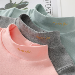 Демисезонный на девочку на мальчика Половина высокая Воротник чистый хлопок длинный рукав Футболка тонкий стиль Весеннее платье детские верх Одежда