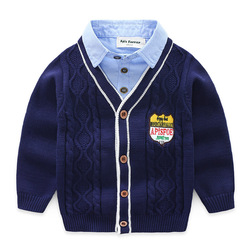 На мальчика свитер куртка чистый хлопок осень-зима детское детские трикотажный кардиган детские рубашка воротник хлопок Линия 8212.