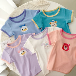 На младенца одежда на мальчика короткий рукав Футболка Летнее платье детские 3 детские Детская девочка детей 1 год и половина рукава верх Одежда чистый хлопок 1 год