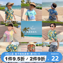 На мальчика комплект лето детские короткий рукав Футболка чистый хлопок детское Летнее платье на пляже детские Пляжный прилив