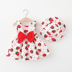 На девочку Платье лето стиль детские Маленькая девочка клубничный жилет платье 0 1-3 года на младенца женский детские Летнее платье