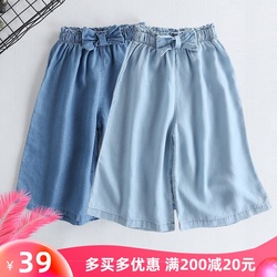 На девочку Подниматься хлопок Тонкий стиль Широкие штаны ноги детские бантики Штаны корейская версия 7 баллов в Китае джинсы шорты