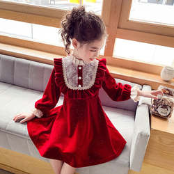 На девочку платье демисезонный новая коллекция Большая девушка бархат для маленькой принцессы Сладкий стиль замшевый малышка красный юбка