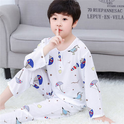Детские хлопок Шелковая одежда тонкая стиль лето длинный рукав на мальчика мужской Детский кондиционер Home Service Pajamas комплект