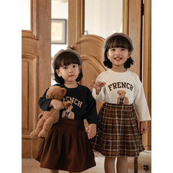 Молоденец на девочку Медведь Печать T -Fork 2021 осень новая коллекция винтаж винтаж детские эластичные для отдыха верх Прилив