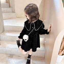 На девочку Платье 2022. новая коллекция демисезонный детские западный стиль для маленькой принцессы юбка корейская версия детские весна черный Юбка весеннее платье