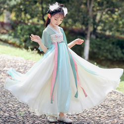 Hanfu на девочку Летнее платье Китайский стиль костюм супер фея детские Юбка летняя светлая пряжа элегантное длинное платье маленькая девочка тан костюм