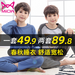 Кошачий человек на мальчика пижама демисезонный чистый хлопок мужской ребенок длинный рукав Китайский ребенок детские полностью хлопок Тонкий стиль Домашняя служба Осенняя одежда комплект