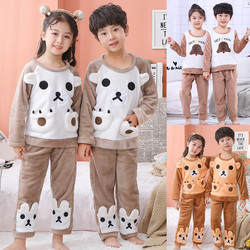 Осень-зима время года детские Французская пижамас на мальчика Девушка большой уход за детьми утепленный Ребенок удерживающий тепло комплект Коралловый бархат