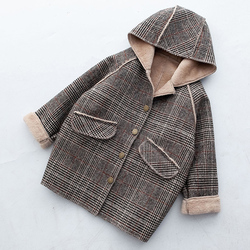 На девочку шерсть детские клетчатый куртка пальто детское осень-зима 2022 новая коллекция фасон средней длины стиль Китайский ребенок корейская версия западный стиль