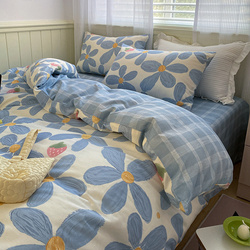 Taoqi youy ins ins wind cotton four -piece fiece printing All -cotton Double Person Chec