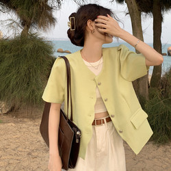 Летний дизайнерский короткий пиджак классического кроя, короткий рукав, тренд сезона, подходит для подростков